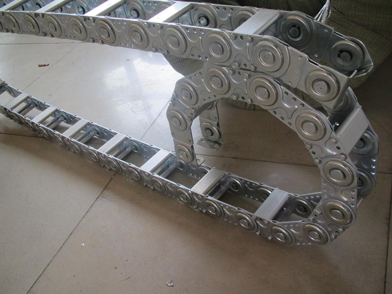 單元鏈節由左右鏈板和上下蓋板組成,拖鏈每節部能打開.裝拆方便.不必穿線,打開蓋板后即可把電纜、油管、氣管等放入拖鏈內。