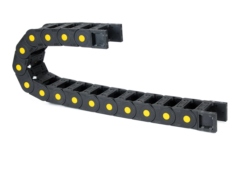 本公司拖鏈采用全新增強尼龍66材質制成(尼龍料PA66:70%+增強料玻璃纖維30%)制成,具有耐磨、高強韌性等特點。質保三年,終身維護