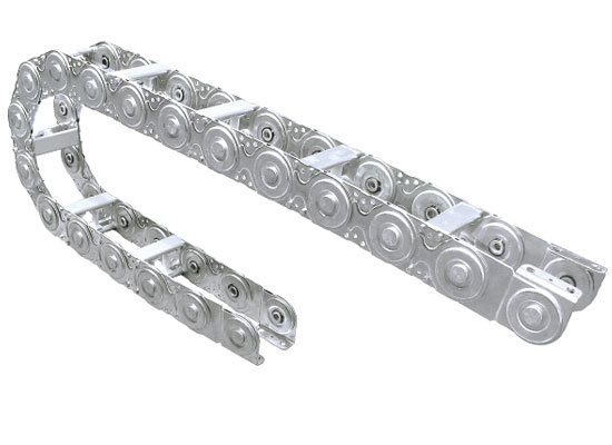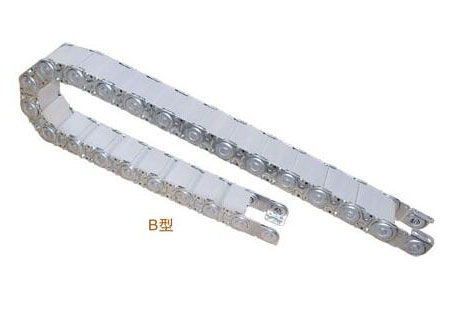 TLG型鋼鋁拖鏈可承載數量多,重量大的電纜及油管,自由懸置(允許不用支承輪)長度大,支撐板可依顧客需要制作,適用于工作母機,移動機械等。其彎曲半徑為50-600mm,鏈板高度為35-150mm,可任意選用。